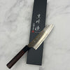 The Yu Kurosaki AS Kokusen Ei is a masterfully crafted Japanese kitchen knife that exemplifies both elegance and cutting performance. At its core is Aogami Super steel one of the finest high carbon steels used in Japanese blades renowned for its exceptional hardness, edge retention, and ability to take a razor-sharp edge. This premium core is clad in stainless steel for added corrosion resistance and features a polished kurouchi finish, which blends traditional rustic aesthetics with a refined, modern edge. The blade also showcases the distinctive “Kokusen Ei” hand hammered pattern, a dark, shimmering texture that reflects Kurosaki’s unique artistry. With its razor-thin grind, perfect balance, and striking visual appeal, this knife is a standout fusion of traditional technique and contemporary performance.