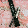 The Kiritsuke has become very popular in the past few years as the drop tip tappers down to a very thin scalpel and is an aggressive work horse. They generally come in a few sizes ranging from 210mm to 240mm. Traditionally a kiritsuke is a single-beveled and combined with the rustic geometry, makes the kiritsuke look like an epic kitchen sword. This is used for slicing up large cuts of meat and fish it will give you a clean cut finish