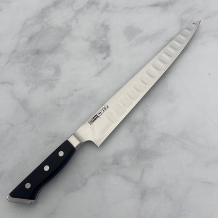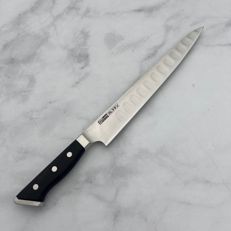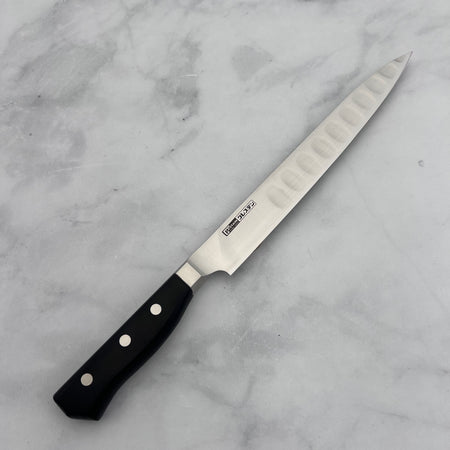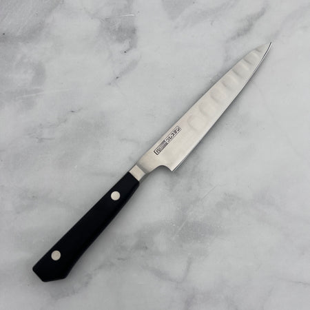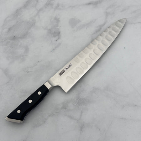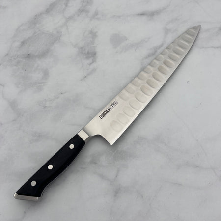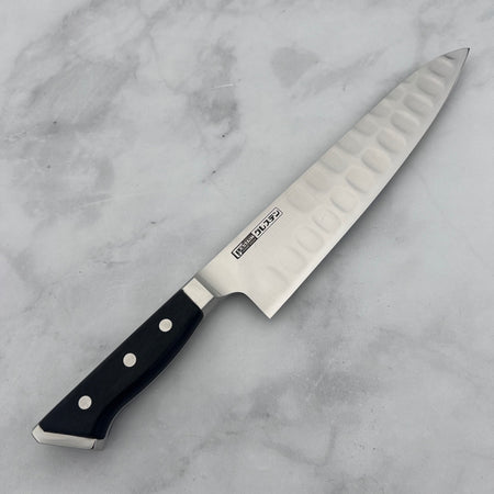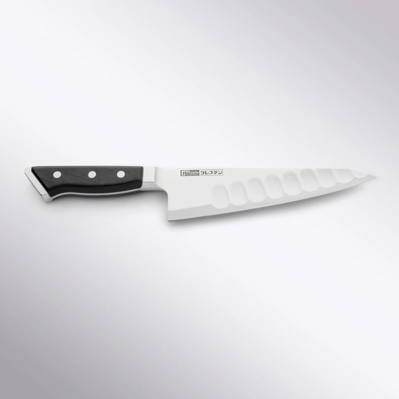 One of Glestain’s most notable features is the rectangular-shaped dimples ground into one side of the blade. These dimples reduce surface tension, preventing starchy foods like potatoes and cheese from sticking to the blade, thereby enhancing cutting efficiency.