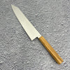 The Kiritsuke is a great replacement for a gyuto/chef’s knife and has become very popular in the past few years as the drop tip tappers down to a very thin scalpel and is an aggressive work horse. They generally come in a few sizes ranging from 210mm to 240mm. Traditionally a kiritsuke is a single-beveled and combined with the rustic geometry, makes the kiritsuke look like an epic kitchen sword. This is used for slicing up large cuts of meat and fish it will give you a clean cut finish