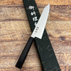 Aogami 2 (also known as Blue Paper Steel #2) is a high carbon steel known for exceptional hardness and long lasting edge with ease of sharpening, It is a versatile steel with a carbon content around 1-1.2%. A key characteristic of this high-carbon steel is its tendency to oxidize and develop a patina over time, which is countered here by stainless steel cladding.