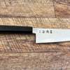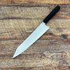 The Kiritsuke has become very popular in the past few years as the drop tip tappers down to a very thin scalpel and is an aggressive work horse. They generally come in a few sizes ranging from 210mm to 240mm. Traditionally a kiritsuke is a single-beveled and combined with the rustic geometry, makes the kiritsuke look like an epic kitchen sword. This is used for slicing up large cuts of meat and fish it will give you a clean cut finish