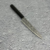 The Petty knife is light and thin with a bit of flex to it and is used for peeling, chopping and trimming. Not used in a hammer grip way meaning you don’t chop up and down like a chefs knife due to not having enough clearance for the knuckles. Mostly used for cutting away from the chopping board but is essential for any knife roll and home kitchen. The general size of a petty ranges from 95mm to 150mm but can go up to 180mm but this is considered to be in a slicing categories.