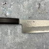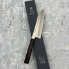The Kiritsuke has become very popular in the past few years as the drop tip tappers down to a very thin scalpel and is an aggressive work horse. They generally come in a few sizes ranging from 210mm to 240mm. Traditionally a kiritsuke is a single-beveled and combined with the rustic geometry, makes the kiritsuke look like an epic kitchen sword. This is used for slicing up large cuts of meat and fish it will give you a clean cut finish