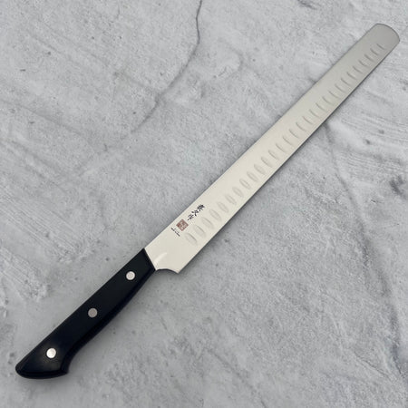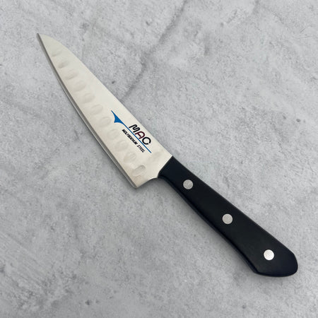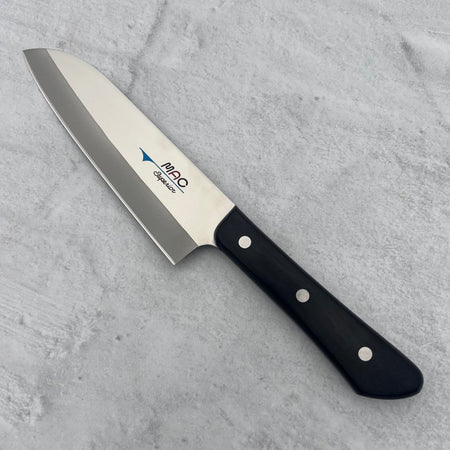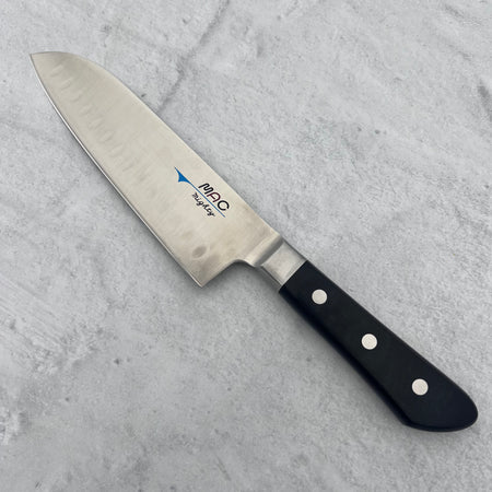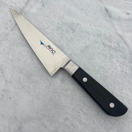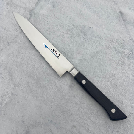 MAC stain-resistant knives are entirely produced by professional craftsmen in Seki City, renowned for superior sword manufacturing since the Middle Ages. MAC blades are made from rust-resistant Molybdenum High-Carbon cutlery steel. Blades are hand-ground, and hand-sharpened on water-cooled stones to optimise the quality of the finished blade. The thin razor-sharp blades are sharper and stay sharp longer than other leading knife brands. The steel has optimal hardness between 57º and 61º Rockwell C and is still easy to re-sharpen.
