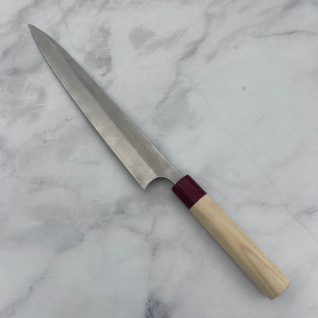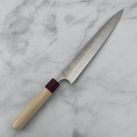 Masakage knives are forged in Takefu Village, located in Echizen, Japan, an area with a rich history of blacksmithing that dates back over 700 years. This region is particularly famous for its production of high-quality blades and is home to many master blacksmiths. Each Masakage knife is meticulously crafted using premium materials, such as high-carbon steels (e.g., VG10, Aogami, or Shirogami), and features a traditional Japanese octagonal handle made from natural wood.