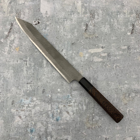 At the family run business Nigara Hamono, swords and knives have been created since their official appointment by the Tsugaru clan more than 350 years, and the business dates back 8 generations. Today, Nigara Hamono has a reputation for the absolute highest quality and the level of expertise and skill these craftsmen posses is not often found. The company is led by the master blacksmith by the name of Tsuyoshi Yoshizawa and every knife they make is forged by hand with the utmost care and attention to detail and quality. This combined, helps create knives made to last for years to come. Hand-crafted using R2/SG2 high-speed powder steel and with perfectly crafted custom and wood handles the fit and finish of Nigara knives are second to none.