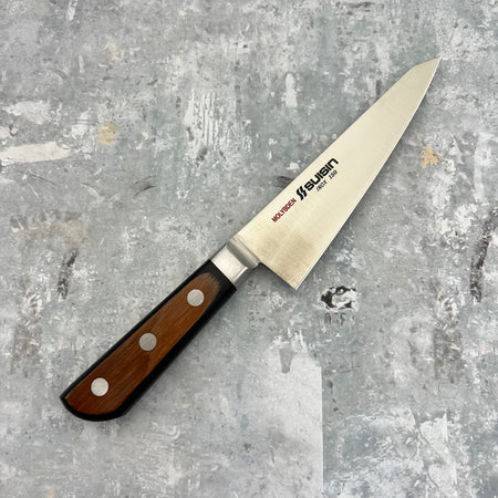Suisin is a prestigious Japanese knife brand known for its commitment to precision craftsmanship and innovative design. Founded in 1990 by Junro Aoki in Sakai City, Osaka—one of Japan’s historical centres for blade-making—Suisin combines traditional techniques with modern advancements to produce high-performance kitchen knives. The brand’s name, meaning “drunken heart,” symbolises a deep passion for knife-making, reflecting the artisans’ dedication to their craft. Suisin knives are highly regarded among professional chefs and culinary enthusiasts for their exceptional sharpness, balance, and ease of maintenance.