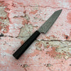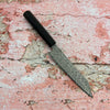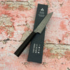 The petty knife is light and thin with a bit of flex to it and is used for peeling, chopping and trimming. Not used in a hammer grip way meaning you don’t chop up and down like a chefs knife due to not having enough clearance for the knuckles. Mostly used for cutting away from the chopping board but is essential for any knife roll and home kitchen. The general size of a petty ranges from 95mm to 150mm but can go up to 180mm but this is considered to be in a slicing categories.