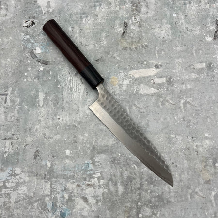 The utility knife is a knife that sits between a paring/petty and a slicing knife with a general length of around 150mm to 210mm. It is thicker in the blade and used for peeling and dicing shallots, peeling oranges and segmenting and most medium sized fruits and vegetables. Its the happy medium knife for a large collection and something to consider once you have your core knife collection established.