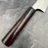 The Honesuki is a Japanese boning knife designed primarily for breaking down poultry but also excels at processing larger cuts of meat with bone. Unlike Western boning knives, which tend to be thin and flexible, the Honesuki features a thicker spine and rigid, triangular blade, giving it superior strength and precision. This rigidity allows for clean, controlled cuts while preventing the blade from bending when working around joints and bones.