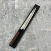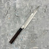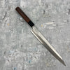 A yanagiba slips through food effortlessly and its incredible sharpness means you never struggle. The yanagiba is a gateway knife for people wanting to get into single bevels and learn some new tricks. When slicing meat or fish, this blade will naturally want to pull to the left on a right-handed knife. (the opposite is true for a lefty.) As the driver of the blade, you must take control and tell it where to go. That may sound tricky, but you will get the hang of it after a few slices. Still, it can take years to master this knife.